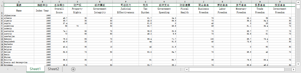 全球国家经济自由度指数数据2023,各国经济自由度 包括180多个国家 1995-2023年数据
