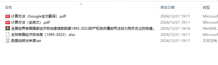 全国世界各国国家经济自由度指数数据1995-2023财产权政府廉政司法效力税负支出财政健康