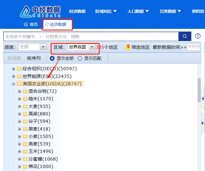 如需要农产品供需方面的数据,例如农产品产量、面积、单产、库存、消费、进出口等,建议来中经数据(