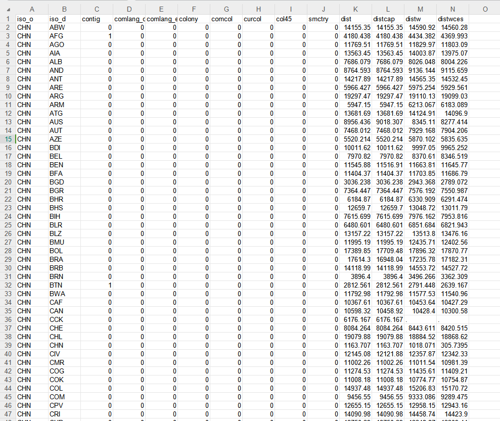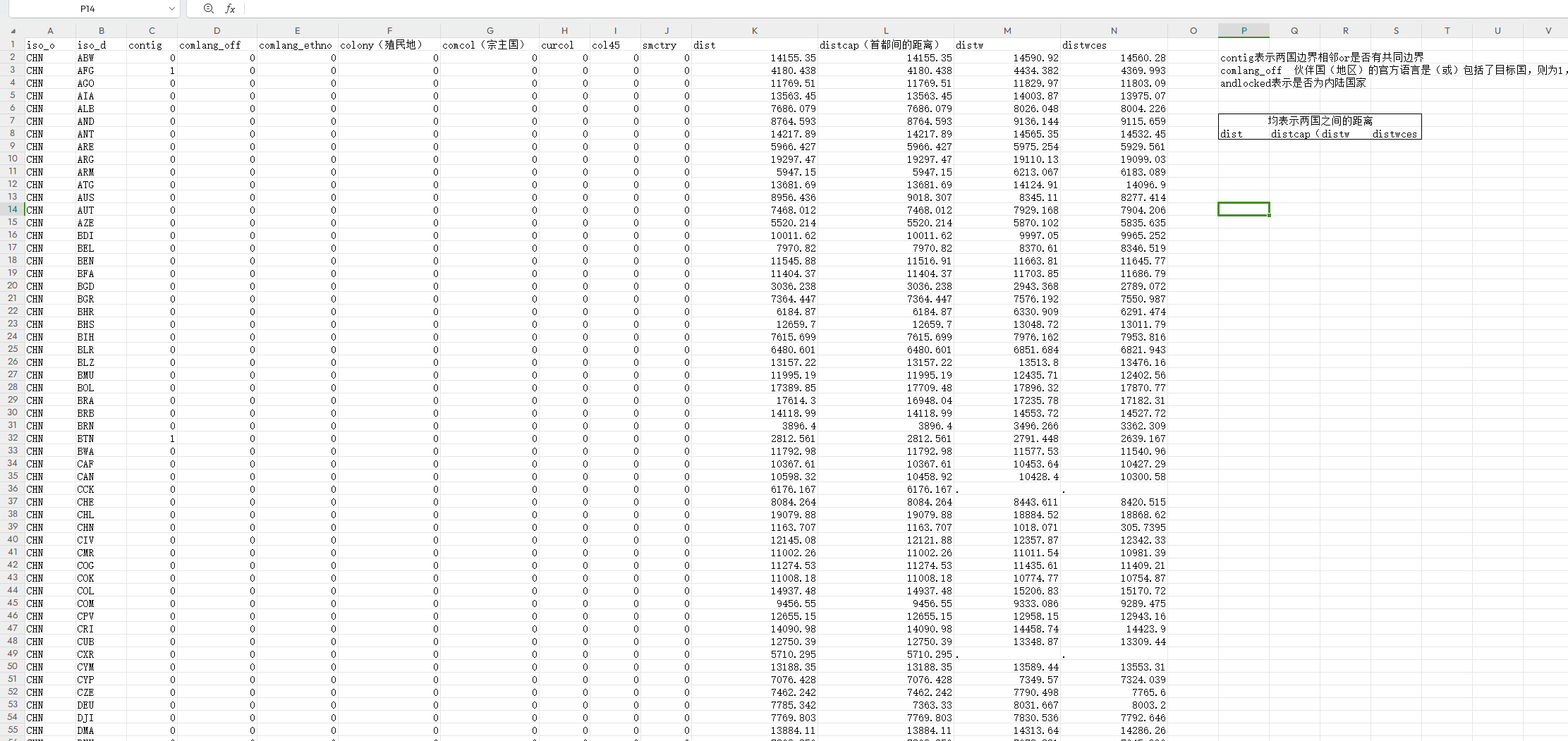 首都距离,distcap,包括是否为殖民地,是否有共同边界,是否共同语言等。