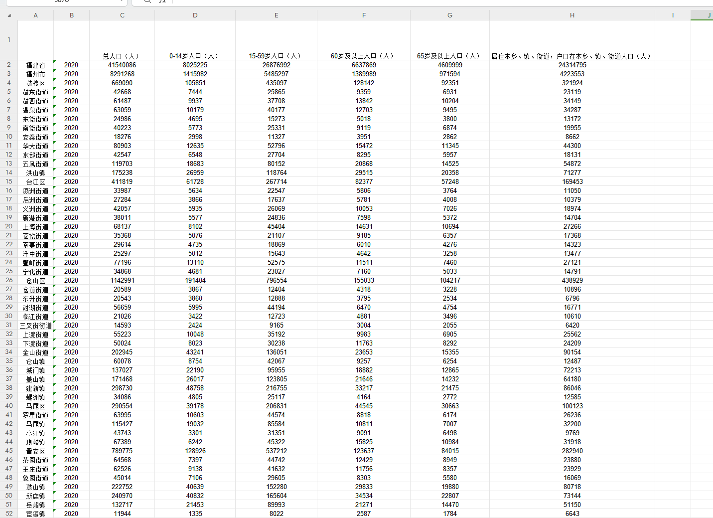 【数据】福建省-第七普年龄结构截面数据31文件夹 Excel 截面精确到乡镇 手工整理
