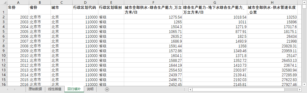 excel数据文件包原始数据(由于多年度指标不同存在缺失值)、线性插值、回归填补三个版本,提供您参考使用。