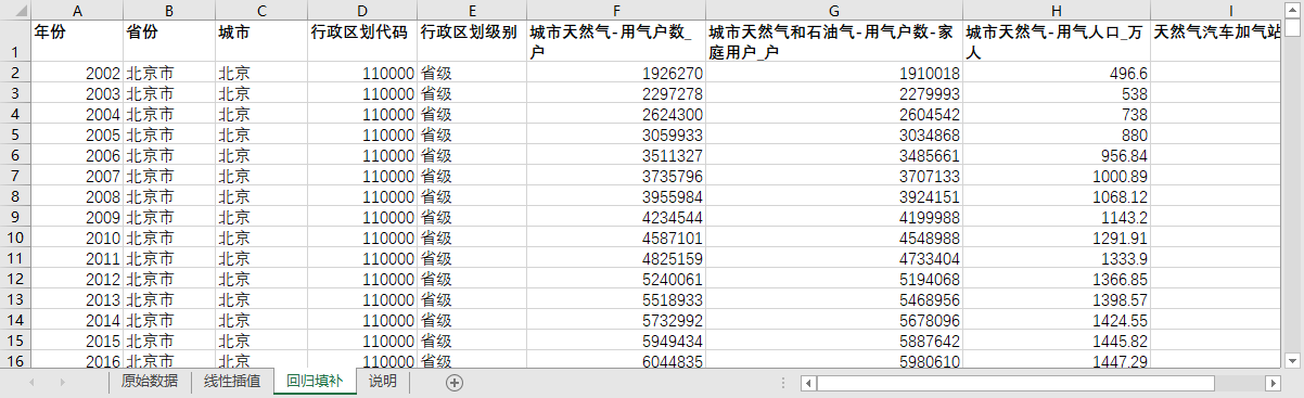全国680多个地级市县级市2002-2023城市天然气用气家庭户数用气人口汽车加气站数含原始数据及无缺失值填补含省级汇总