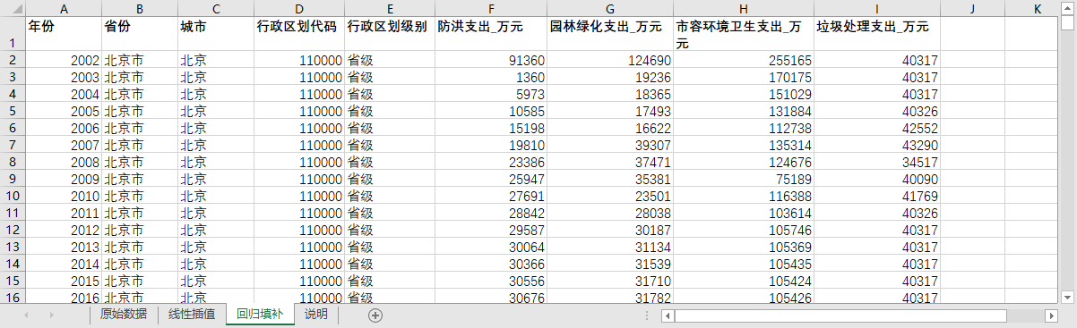 excel数据文件包原始数据(由于多年度指标不同存在缺失值)、线性插值、回归填补三个版本,提供您参考使用。