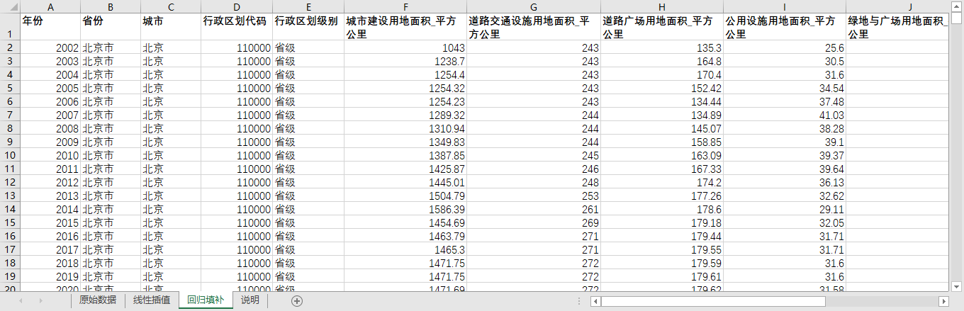 excel数据文件包原始数据(由于多年度指标不同存在缺失值)、线性插值、回归填补三个版本,提供您参考使用。