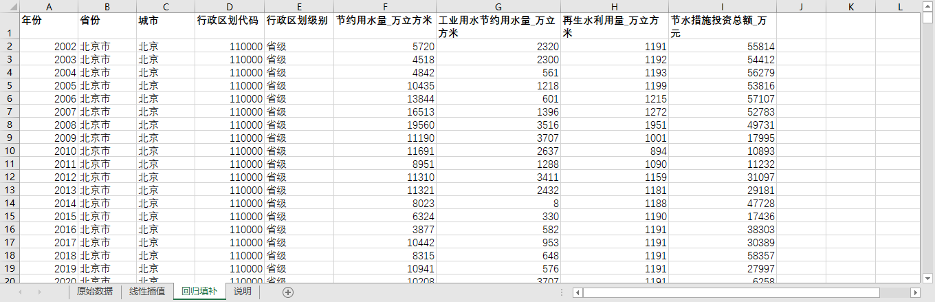 excel数据文件包原始数据(由于多年度指标不同存在缺失值)、线性插值、回归填补三个版本,提供您参考使用。