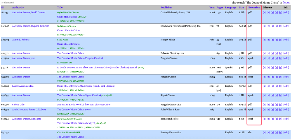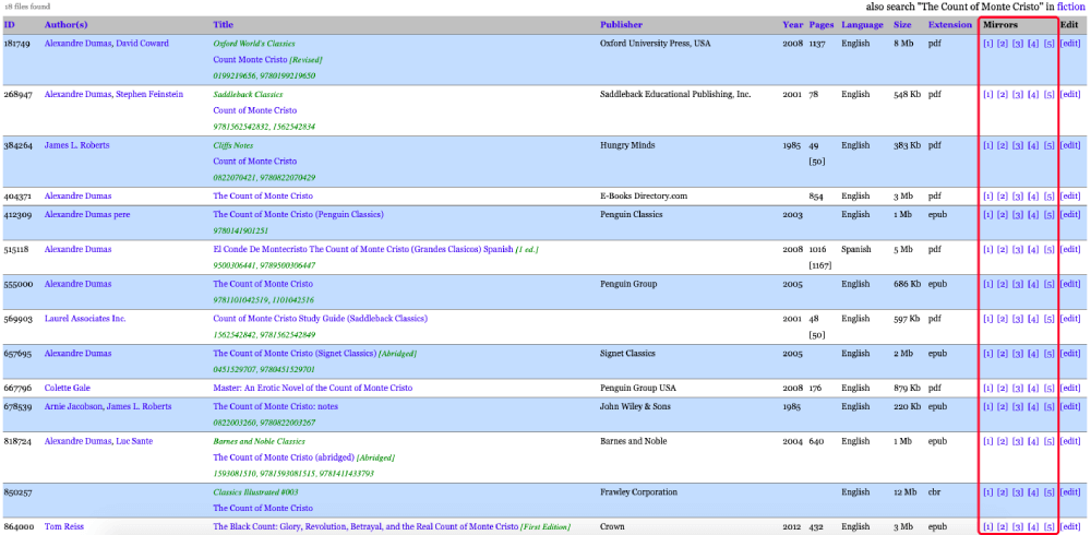 镜像网站(Mirror Sites):LibGen使用了多个镜像网站。这些镜像站点提供相同的数据库和下载功能,但通过不同的域名访问。例如,常见的镜像域名包括 libgen.is, libgen.li, libgen.rs 等。每个镜像站点都可能有不同的服务器和IP地址,从而提高了网站的可用性
