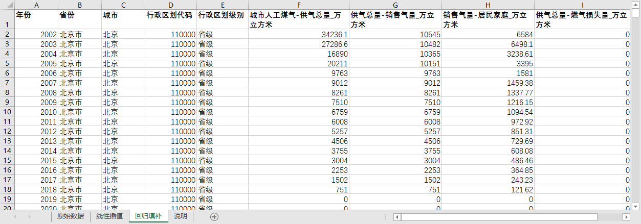 全国680多个地级市县级市2002-2023人工煤气供气总量居民家庭销售气量燃气损失量含原始数据及无缺失值填补含省级汇总
