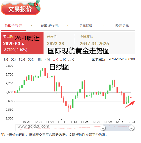昨日黄金市场走势呈现出先扬后抑的态势,冲高回落的状态。当日价格最高上涨至2633.16位置,最低下跌至2608.04位置,收盘于2612.56位置。