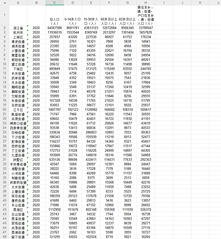 第七次全国人口普查产生的数据资料,是人口普查资料开发利用的重要成果。它是公开发布的反映小区域人口分布和人口规模的数据集,为进行微观人口研究,加强人口管理和开展社会调查提供了丰富的基础数据。但是原始数据的使用并不方便,所以我们进行了整理汇总,有关情况说明如下
