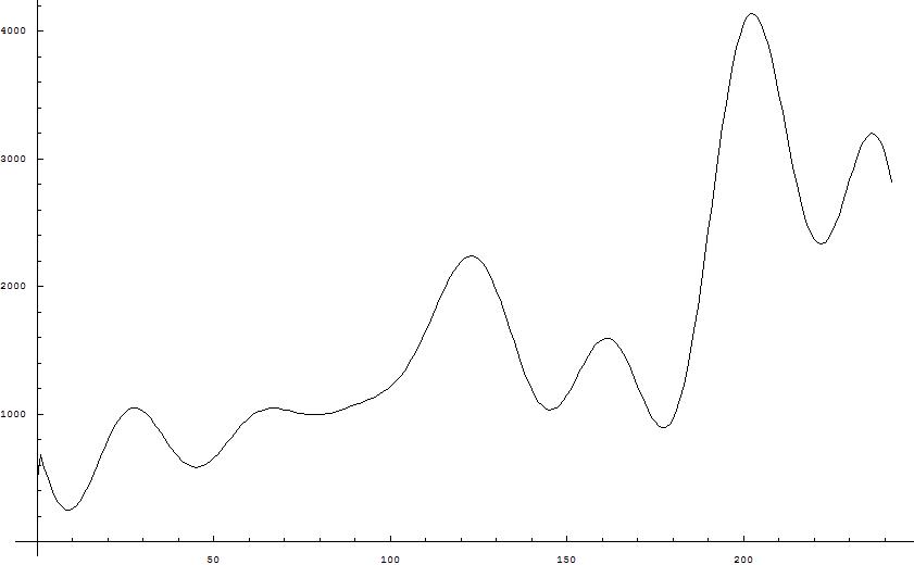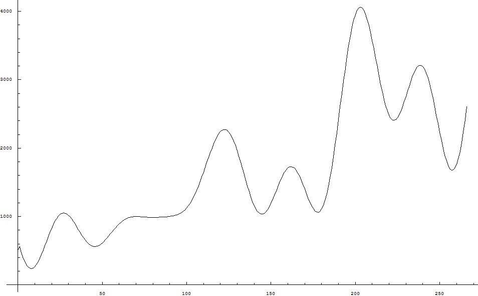 为了检验方法的有效性,去掉2011年的上证指数数据后用同样的方法猜测了1990-2011.1的中枢: