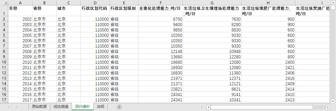 excel数据文件包原始数据(由于多年度指标不同存在缺失值)、线性插值、回归填补三个版本,提供您参考使用。