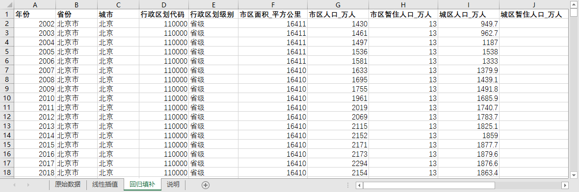 excel数据文件包原始数据(由于多年度指标不同存在缺失值)、线性插值、回归填补三个版本,提供您参考使用。