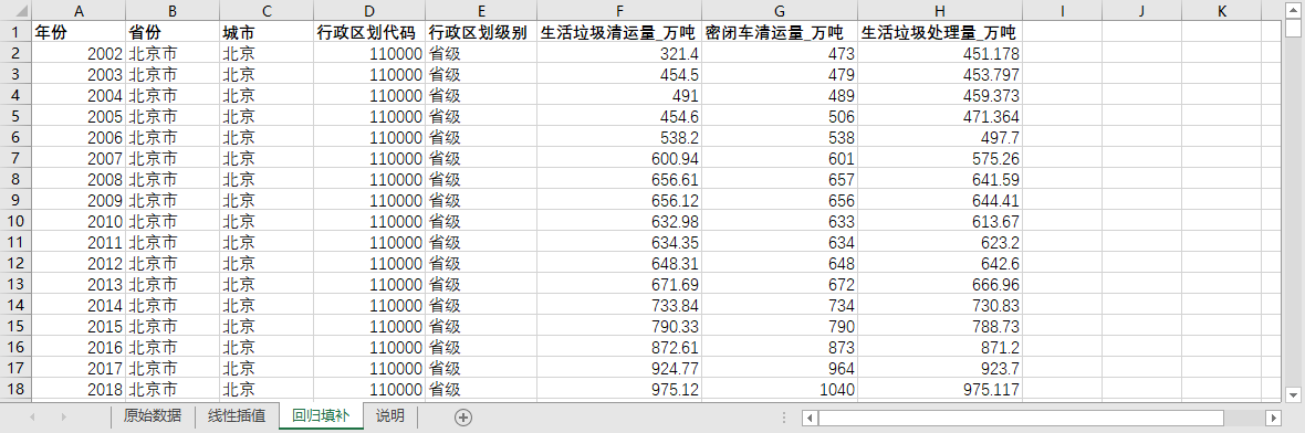 全国680多个地级市县级市2002-2023市容环境卫生生活垃圾密闭车清运量处理量含原始数据及无缺失值填补含省级汇总