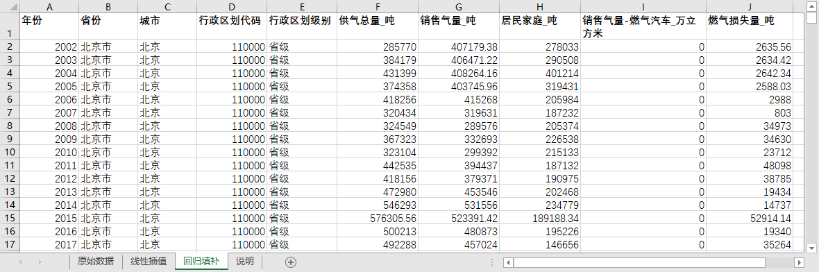 全国680多个地级市县级市2002-2023液化石油气供气总量居民家庭供热燃气汽车销售气量损失量含原始数据及无缺失值填补含省级汇总