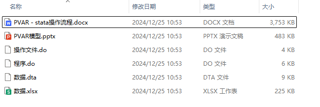 在实际操作中,PVAR模型可以通过使用Stata命令如pvar、pvarsoc、pvargranger、pvarstable、pvarirf和pvarfevd来实现模型的选择、估计和推理。这些命令与Stata内置的var命令的语法和输出相似,便于在面板和时间序列变量之间进行切换。