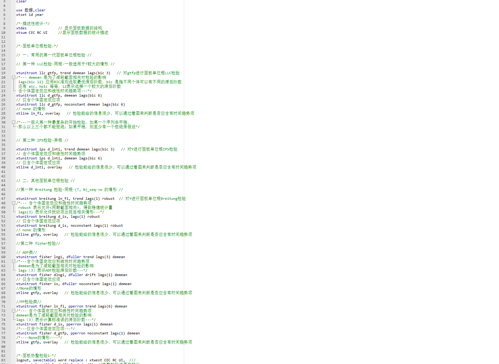 Pvar模型stata代码(含示例数据)包含单位根检验,平稳性检验,GMM回归,脉冲响应函数,方差分解等,操作流程讲解,参考等。