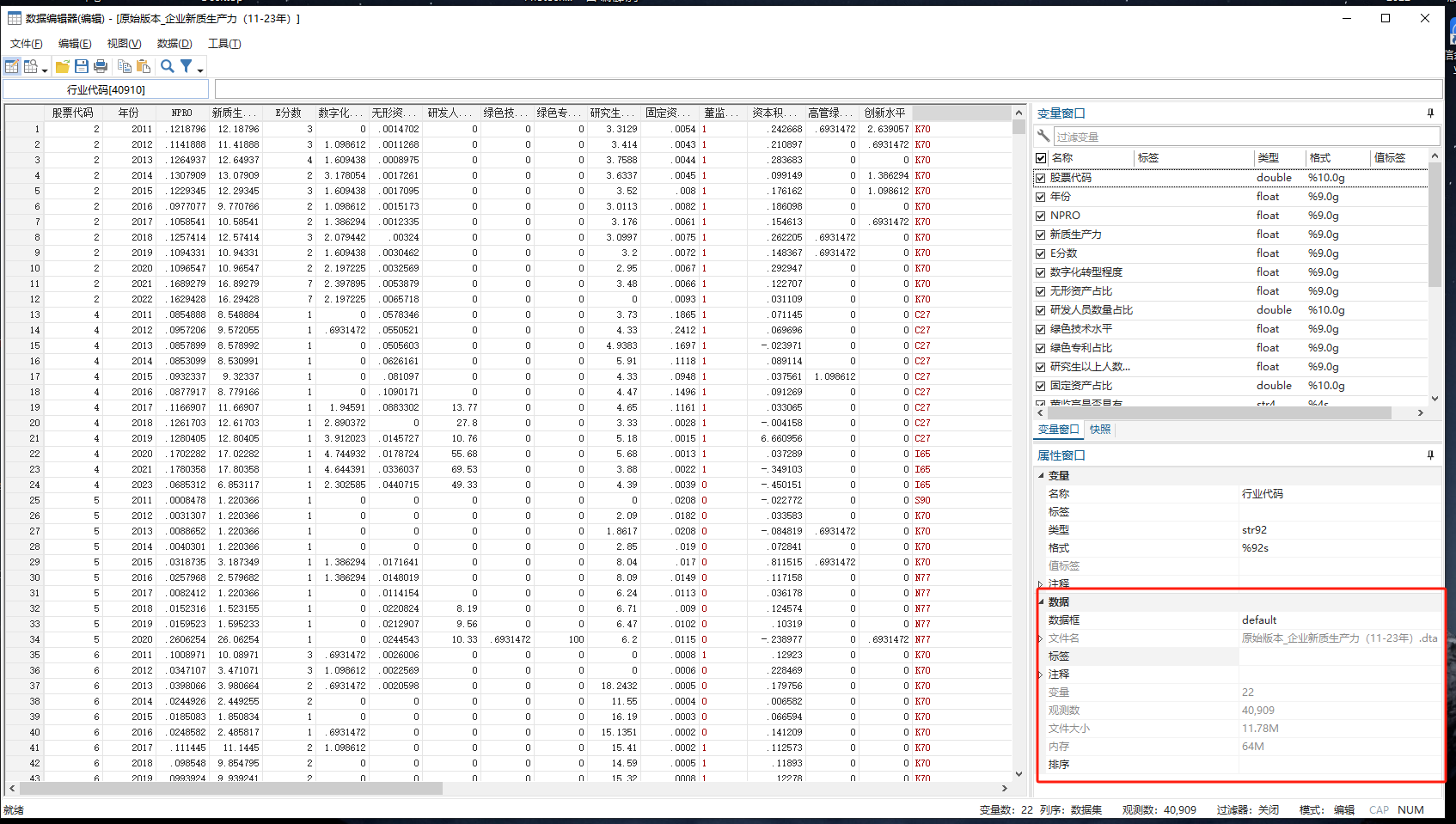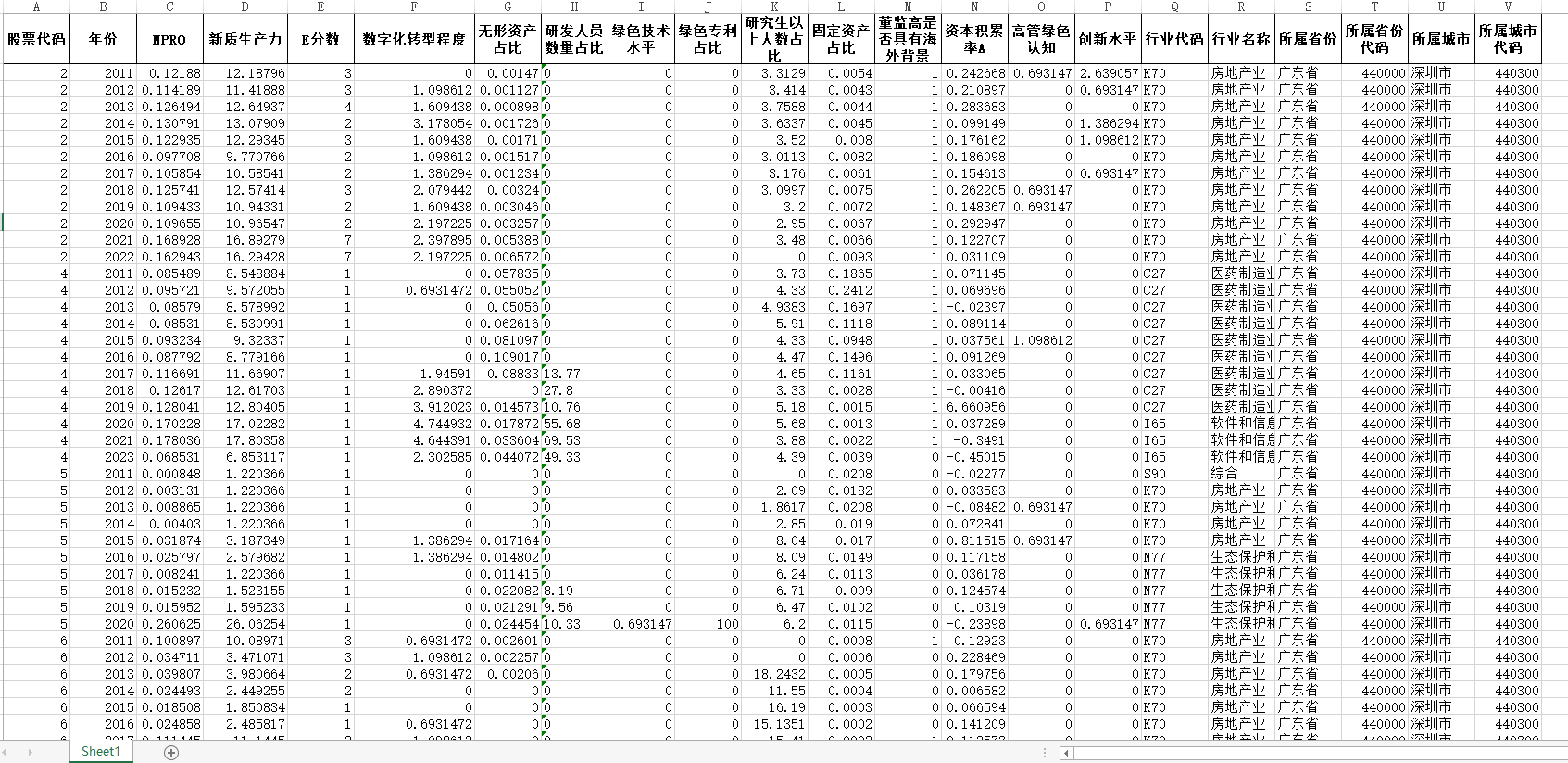 2011-2023年上市公司新质生产力评价体系原始数据+do代码+测算结果