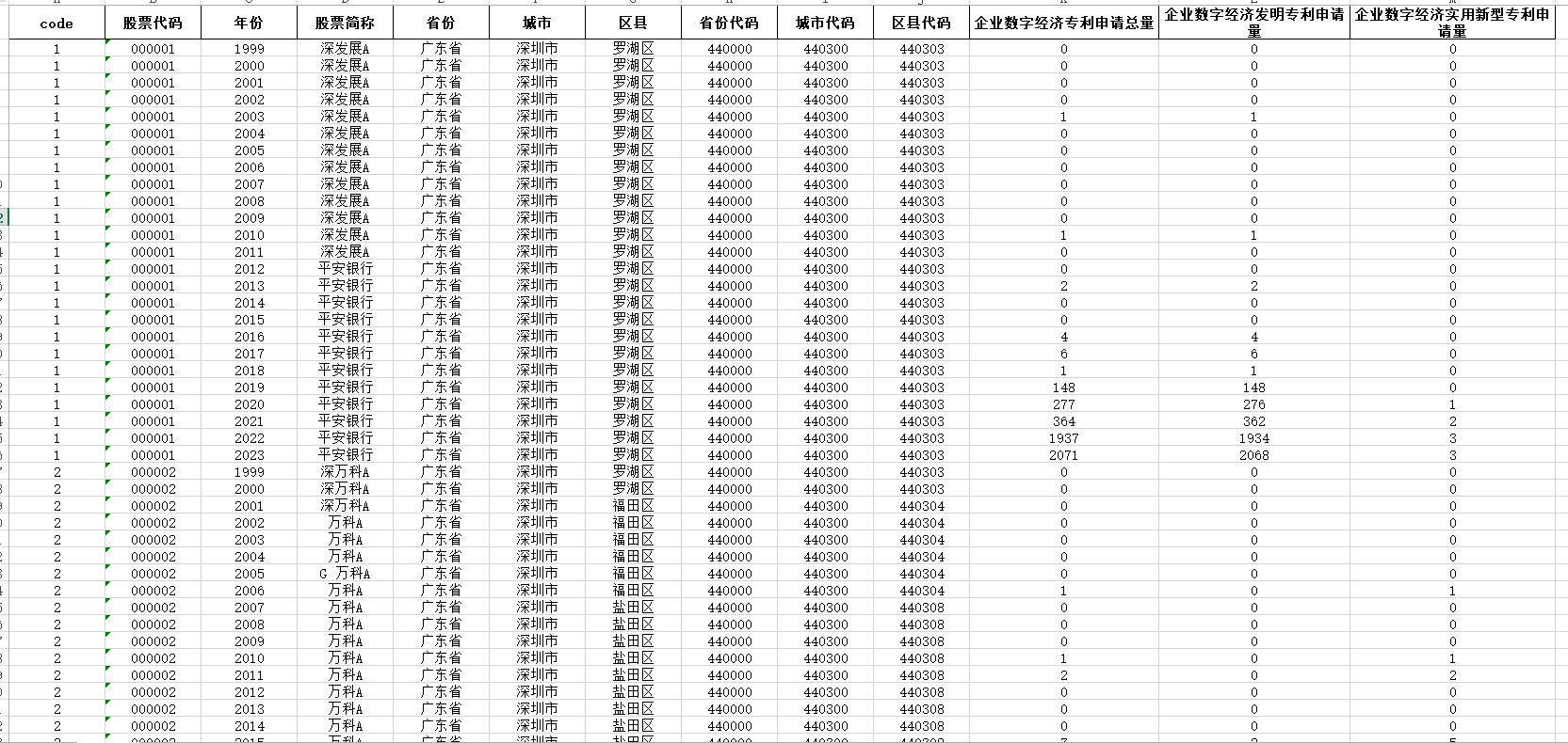1999-2023年A股上市公数字经济专利excel+dta面板数据