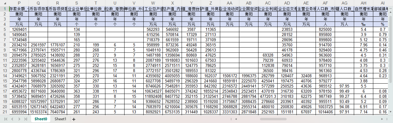 GDP GDP增速 第一产业增加值占GDP比重 第二产业增加值占GDP比重 第三产业增加值占GDP比重 人均GDP 社会消费品零售总额 固定资产投资(不含农户) 新设外商投资企业数_外商直接投资 实际利用外资金额(美元) 一般公共预算收入 一般公共预算支出 一般公共预算支出_教育 一般公共预算支出_科学技术 金融机构人民币各项存款余额_个人储蓄存款 金融机构人民币各项存款余额 金融机构人民币各项贷款余额 规模以上工业企业单位数 规模以上工业企业单位数_内资企业 规模以上工业企业单位数_港澳台商投资企业 规模以上工业企业单位数_外商投资企业 规模以上工业总产值 规模以上工业总产值_内资企业 规模以上工业总产值_港澳台商投资企业 规模以上工业总产值_外商投资企业 规模以上工业企业流动资产合计 规模以上工业企业固定资产合计 规模以上工业企业利润总额 规模以上工业企业应交增值税 规模以上工业企业主营业务税金及附加 户籍人口数 年均户籍人口数 户籍人口自然增长率 第一产业就业人员占全部城镇单位就业人员比重 第二产业就业人员占全部城镇单位就业人员比重 第三产业就业人员占全部城镇单位就业人员比重 城镇非私营单位就业人员数 城镇非私营单位就业人员数_第一产业 城镇非私营单位就业人员数_第二产业 城镇非私营单位就业人员数_第三产业 城镇非私营单位就业人员数_农、林、牧、渔业 城镇非私营单位就业人员数_采矿业 城镇非私营单位就业人员数_制造业 城镇非私营单位就业人员数_电力、热力、燃气及水生产和供应业 城镇非私营单位就业人员数_建筑业 城镇非私营单位就业人员数_批发和零售业 城镇非私营单位就业人员数_交通运输、仓储和邮政业 城镇非私营单位就业人员数_住宿和餐饮业 城镇非私营单位就业人员数_信息传输、软件和信息技术服务业 城镇非私营单位就业人员数_金融业 城镇非私营单位就业人员数_房地产业 城镇非私营单位就业人员数_租赁和商务服务业 城镇非私营单位就业人员数_科学研究和技术服务业 城镇非私营单位就业人员数_水利、环境和公共设施管理业 城镇非私营单位就业人员数_居民服务、修理和其他服务业 城镇非私营单位就业人员数_教育 城镇非私营单位就业人员数_卫生和社会工作 城镇非私营单位就业人员数_文化、体育和娱乐业 城镇非私营单位就业人员数_公共管理、社会保障和社会组织 城镇非私营单位在岗职工平均人数 城镇就业人员数_私营企业和个体 城镇非私营单位在岗职工工资总额 城镇非私营单位在岗职工平均工资 城镇登记失业人员数 城市建成区面积 城市建设用地面积 城市建设用地面积_居住用地 城市液化石油气供气总量 城市液化石油气供气总量_居民家庭 城市人工煤气、天然气供气总量 城市人工煤气、天然气供气总量_居民家庭 城市液化石油气用气人口 人工煤气、天然气用气人口 城市公共汽电车运营车辆数 城市出租汽车运营车辆数 城市公共汽电车客运总量 城市道路面积 城市排水管道长度 城市建成区绿化覆盖面积 城市建成区绿化覆盖率 城市绿地面积 城市公园绿地面积 城市维护建设资金支出 土地面积 城市生活用水供水量 城市供水总量 全社会用电量 城乡居民生活用电量 工业生产用电量 房地产开发投资 房地产开发投资_住宅 限额以上批发和零售业法人单位数 限额以上批发和零售业商品销售总额 普通中学学校数 中等职业教育学校数 普通小学学校数 普通高等学校专任教师数 普通中学专任教师数 中等职业教育专任教师数 普通小学专任教师数 ....