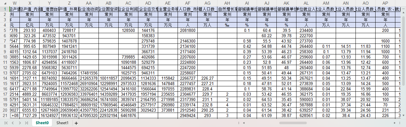 GDP GDP增速 第一产业增加值占GDP比重 第二产业增加值占GDP比重 第三产业增加值占GDP比重 人均GDP 社会消费品零售总额 固定资产投资(不含农户) 新设外商投资企业数_外商直接投资 实际利用外资金额(美元) 一般公共预算收入 一般公共预算支出 一般公共预算支出_教育 一般公共预算支出_科学技术 金融机构人民币各项存款余额_个人储蓄存款 金融机构人民币各项存款余额 金融机构人民币各项贷款余额 规模以上工业企业单位数 规模以上工业企业单位数_内资企业 规模以上工业企业单位数_港澳台商投资企业 规模以上工业企业单位数_外商投资企业 规模以上工业总产值 规模以上工业总产值_内资企业 规模以上工业总产值_港澳台商投资企业 规模以上工业总产值_外商投资企业 规模以上工业企业流动资产合计 规模以上工业企业固定资产合计 规模以上工业企业利润总额 规模以上工业企业应交增值税 规模以上工业企业主营业务税金及附加 户籍人口数 年均户籍人口数 户籍人口自然增长率 第一产业就业人员占全部城镇单位就业人员比重 第二产业就业人员占全部城镇单位就业人员比重 第三产业就业人员占全部城镇单位就业人员比重 城镇非私营单位就业人员数 城镇非私营单位就业人员数_第一产业 城镇非私营单位就业人员数_第二产业 城镇非私营单位就业人员数_第三产业 城镇非私营单位就业人员数_农、林、牧、渔业 城镇非私营单位就业人员数_采矿业 城镇非私营单位就业人员数_制造业 城镇非私营单位就业人员数_电力、热力、燃气及水生产和供应业 城镇非私营单位就业人员数_建筑业 城镇非私营单位就业人员数_批发和零售业 城镇非私营单位就业人员数_交通运输、仓储和邮政业 城镇非私营单位就业人员数_住宿和餐饮业 城镇非私营单位就业人员数_信息传输、软件和信息技术服务业 城镇非私营单位就业人员数_金融业 城镇非私营单位就业人员数_房地产业 城镇非私营单位就业人员数_租赁和商务服务业 城镇非私营单位就业人员数_科学研究和技术服务业 城镇非私营单位就业人员数_水利、环境和公共设施管理业 城镇非私营单位就业人员数_居民服务、修理和其他服务业 城镇非私营单位就业人员数_教育 城镇非私营单位就业人员数_卫生和社会工作 城镇非私营单位就业人员数_文化、体育和娱乐业 城镇非私营单位就业人员数_公共管理、社会保障和社会组织 城镇非私营单位在岗职工平均人数 城镇就业人员数_私营企业和个体 城镇非私营单位在岗职工工资总额 城镇非私营单位在岗职工平均工资 城镇登记失业人员数 城市建成区面积 城市建设用地面积 城市建设用地面积_居住用地 城市液化石油气供气总量 城市液化石油气供气总量_居民家庭 城市人工煤气、天然气供气总量 城市人工煤气、天然气供气总量_居民家庭 城市液化石油气用气人口 人工煤气、天然气用气人口 城市公共汽电车运营车辆数 城市出租汽车运营车辆数 城市公共汽电车客运总量 城市道路面积 城市排水管道长度 城市建成区绿化覆盖面积 城市建成区绿化覆盖率 城市绿地面积 城市公园绿地面积 城市维护建设资金支出 土地面积 城市生活用水供水量 城市供水总量 全社会用电量 城乡居民生活用电量 工业生产用电量 房地产开发投资 房地产开发投资_住宅 限额以上批发和零售业法人单位数 限额以上批发和零售业商品销售总额 普通中学学校数 中等职业教育学校数 普通小学学校数 普通高等学校专任教师数 普通中学专任教师数 中等职业教育专任教师数 普通小学专任教师数 ....