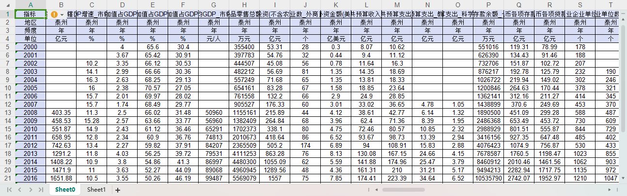 江苏省泰州无锡徐州盐城扬州镇江市辖区约100个统计指标GDP增速第一产业增加值占GDP比重第二产业增加值占GDP比重等2000-2023年度数据