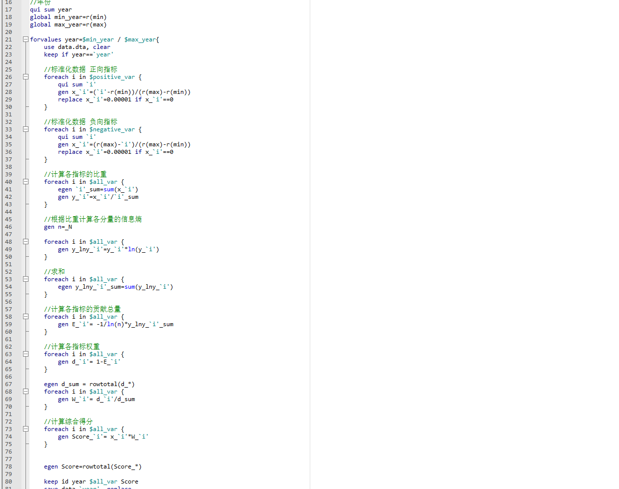熵权法是一种客观的指标评价方法。其基本思路是根据指标变异性的大小来确定客观权重。一般来说,若某个指标的信息熵越小,表明指标值得变异程度越大,提供的信息量越多,在综合评价中所能起到的作用也越大,其权重也就越大。相反,某个指标的信息熵越大,表明指标值得变异程度越小,提供的信息量也越少,在综合评价中所起到的作用也越小,其权重也就越小