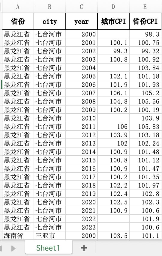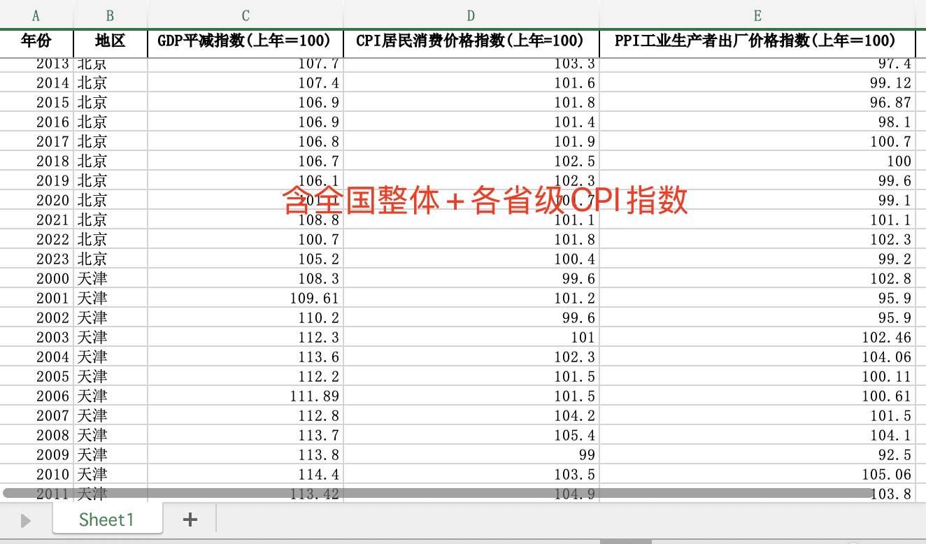 • 数据名称:全国各省及地级市CPI居民消费价格指数PPI数据集(2000-2023年)