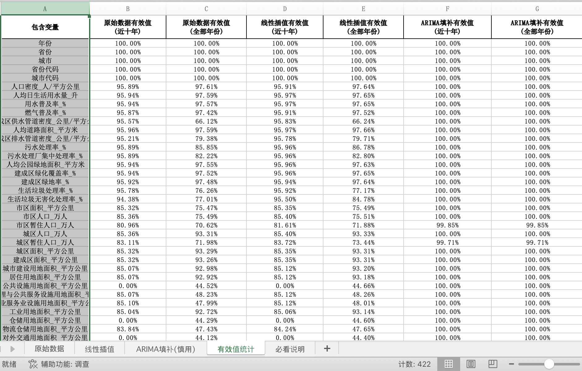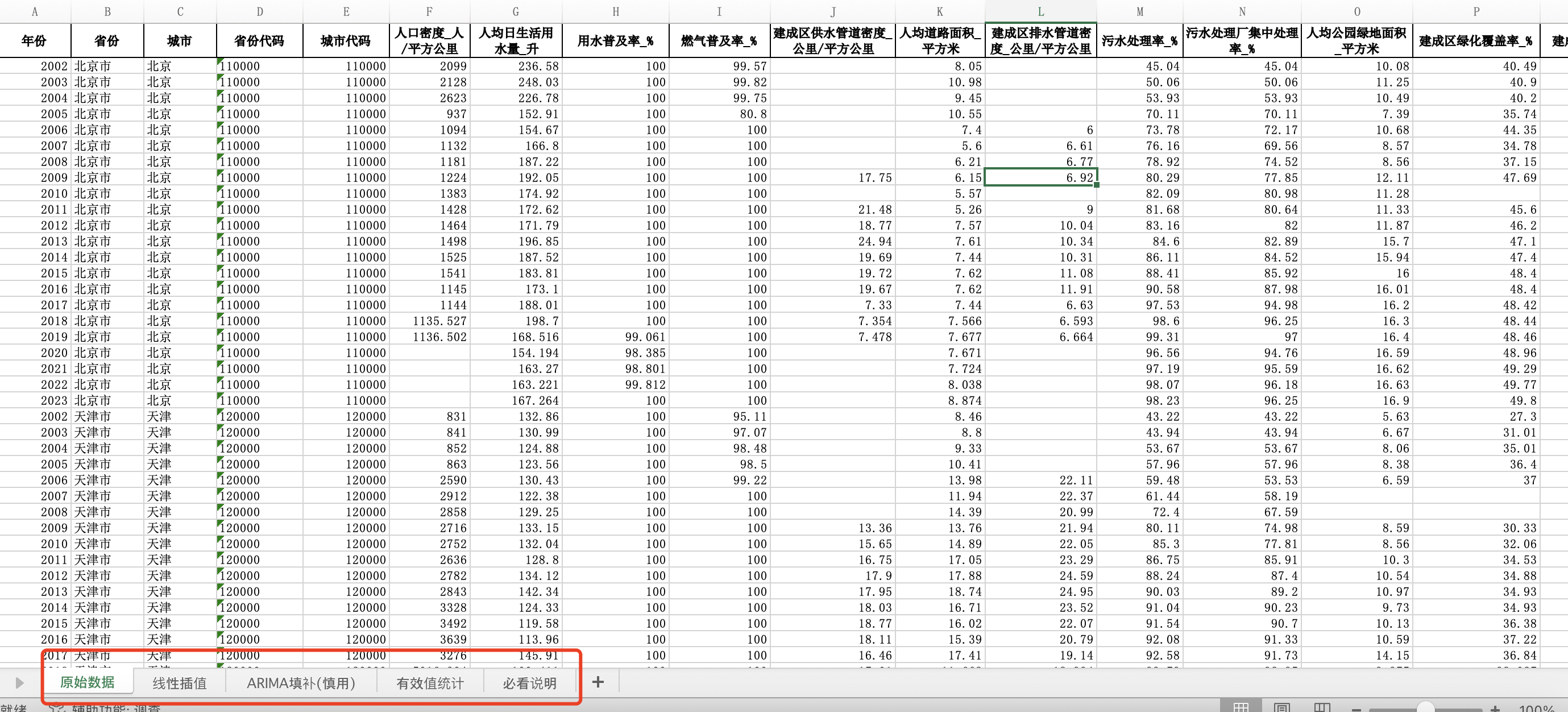 • 数据格式:Excel数据文件包含原始数据(由于多年度指标不同存在缺失值)、线性插值、ARIMA填补(无缺失)三个版本,提供您参考使用。其中,ARIMA填补无缺失值。Excel文件
