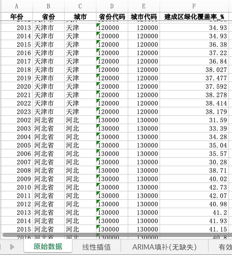 全国各省693县级地级城市建成区绿化覆盖率2002-2023年(插值填补无缺失版).xlsx
