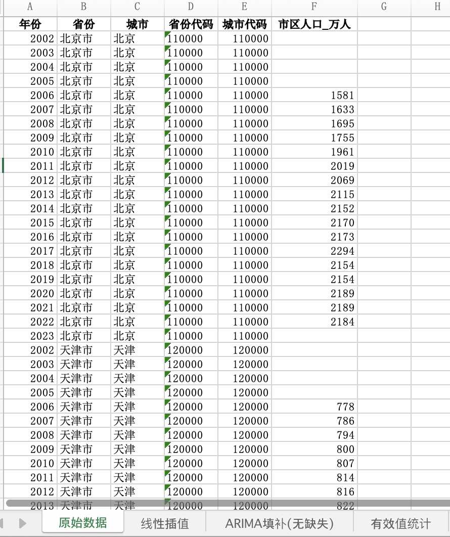 全国各省693县级地级城市市区人口2002-2023年(插值填补无缺失版).xlsx