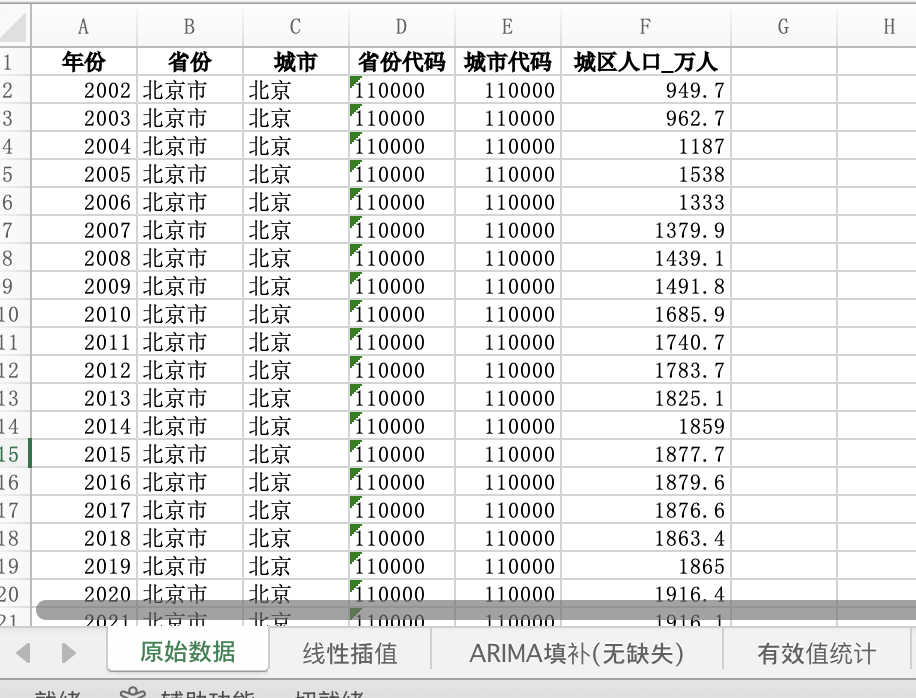 全国各省693县级地级城市城区人口2002-2023年(插值填补无缺失版).xlsx