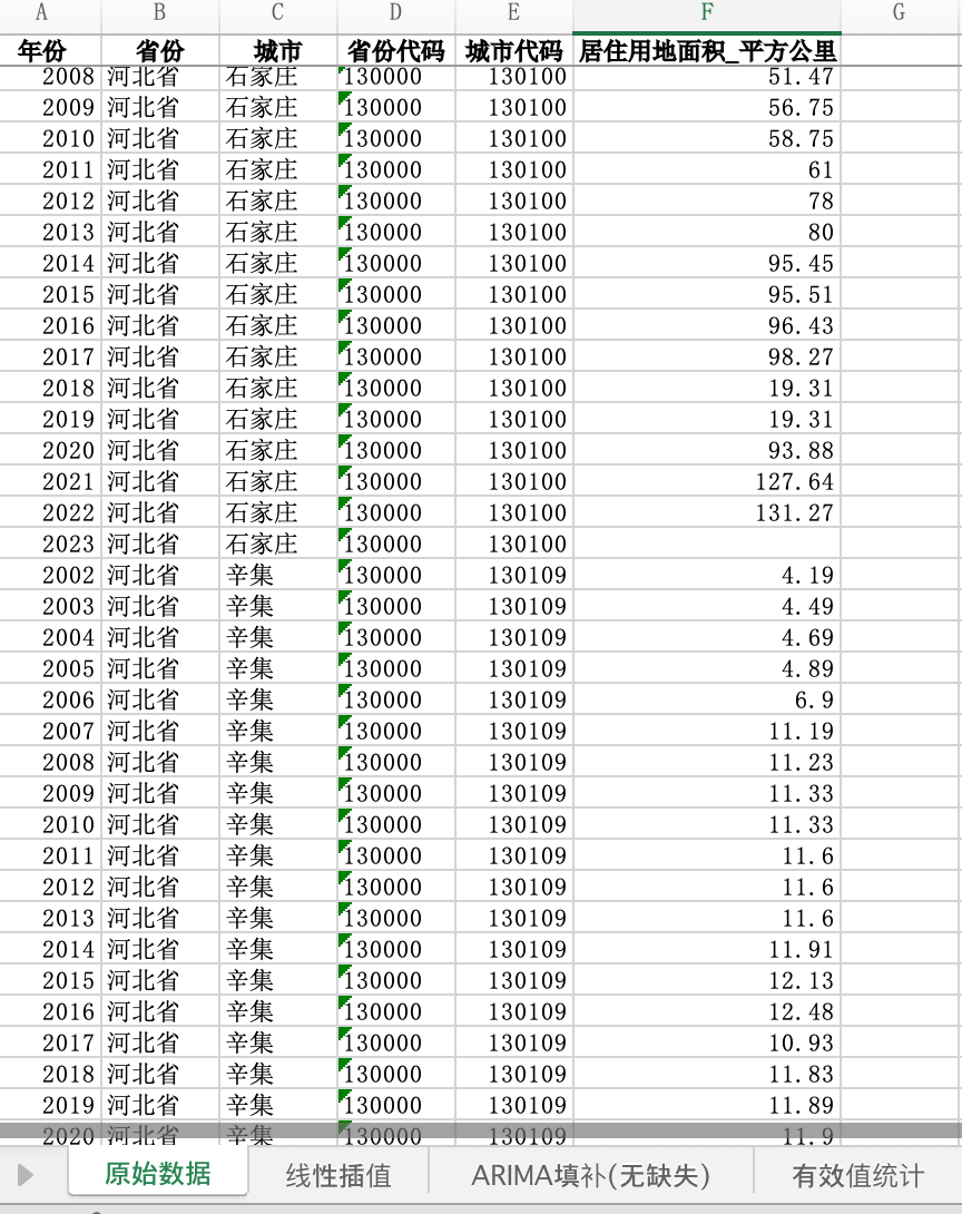 · 数据格式:Excel数据文件包含原始数据(由于多年度指标不同存在缺失值)、线性插值、ARIMA填补(无缺失)三个版本,提供您参考使用。其中,ARIMA填补无缺失值。