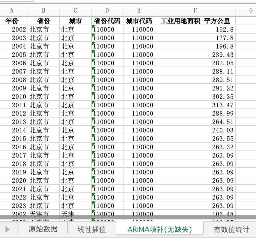 · 数据格式:Excel数据文件包含原始数据(由于多年度指标不同存在缺失值)、线性插值、ARIMA填补(无缺失)三个版本,提供您参考使用。其中,ARIMA填补无缺失值。