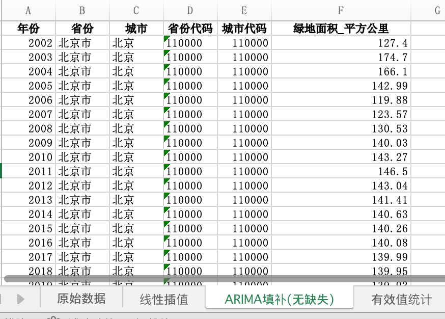 年份 | 省份 | 城市 | 省份代码 | 城市代码 | 绿地面积_平方公里