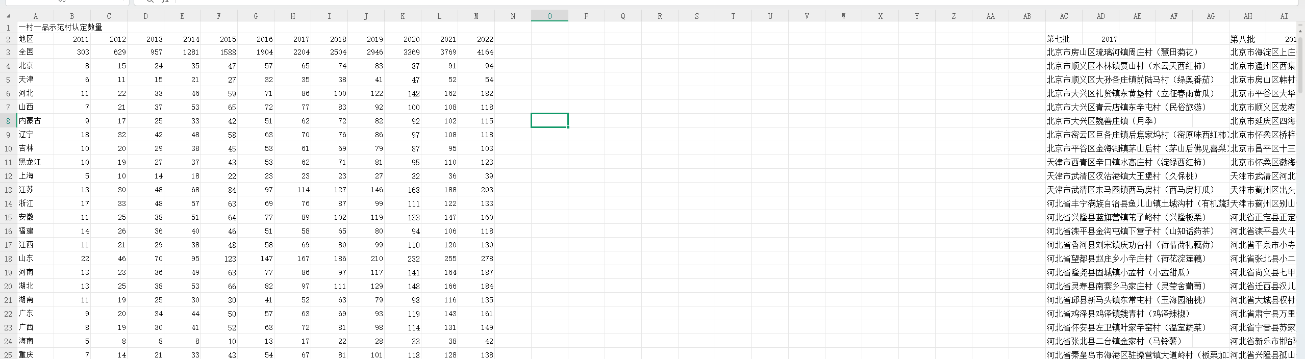 农业农村部官网第一至第十二批名单计数获得,无缺失值,逐年增加数与逐年累加数都有