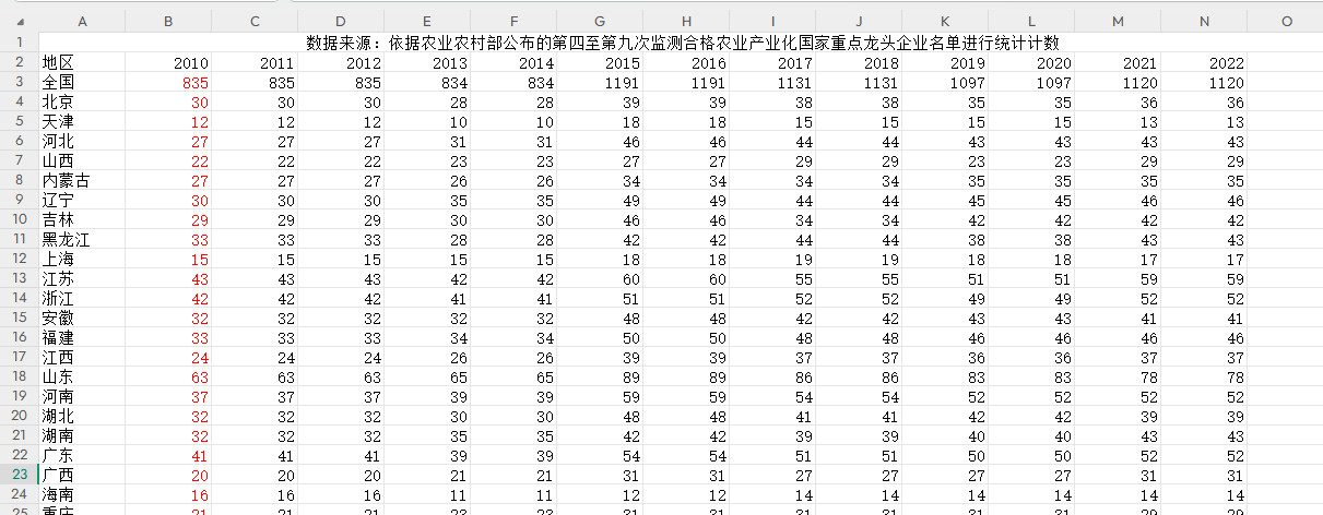 (原创)农业产业化龙头企业及上市企业统计表(四批)