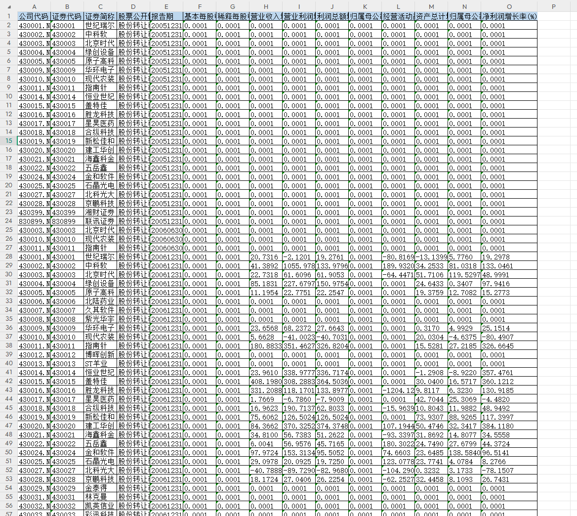 | 归属母公司股东的净利润增长率(%) | Growth Rate Of Net Profit Attributable To Shareholders Of The Parent Company | N | | (本期归属母公司股东的净利润/上期归属母公司股东的净利润-1)*100% |
