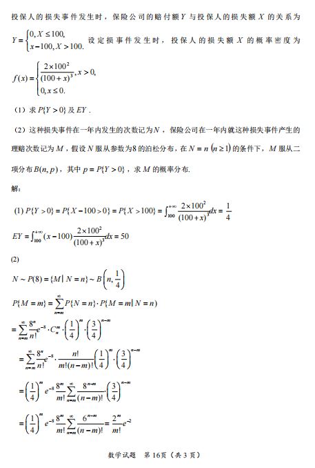 2025考研数学一二三真题和答案