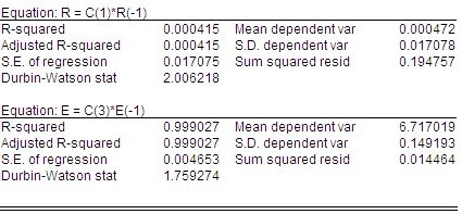 首先依据数据建立合适的均值模型。从图中不难看出,两者均表现为随机游走,模型可以设为: