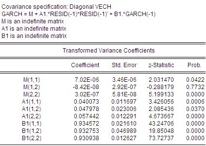 转化后的多变量GARCH的估计结果: