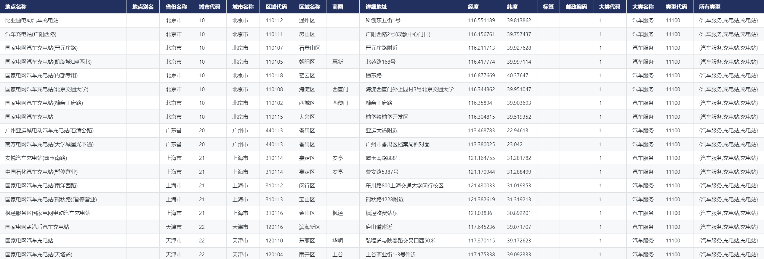 充电站分布数据覆盖全国34个省份的3万条数据,包含充电站名称、省份名称、省份代码、商圈、经纬度等地理信息以及商业类型、评分、消费等衍生信息,能为城市规划、环境科学、市场分析、技术发展和社会经济研究等多个领域提供宝贵的数据支持。