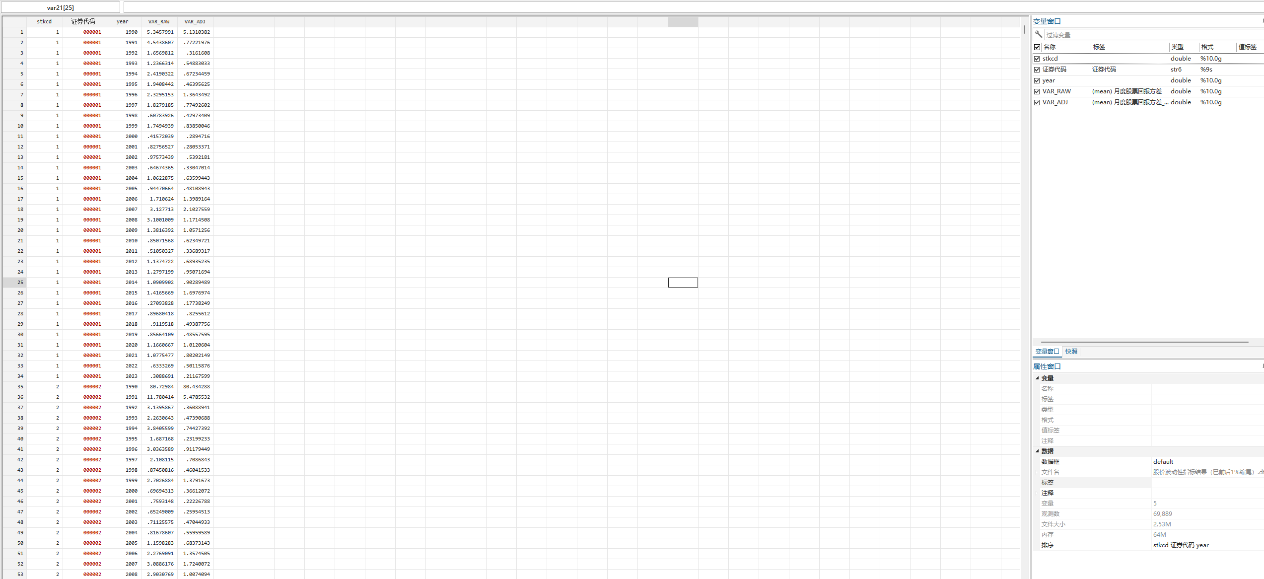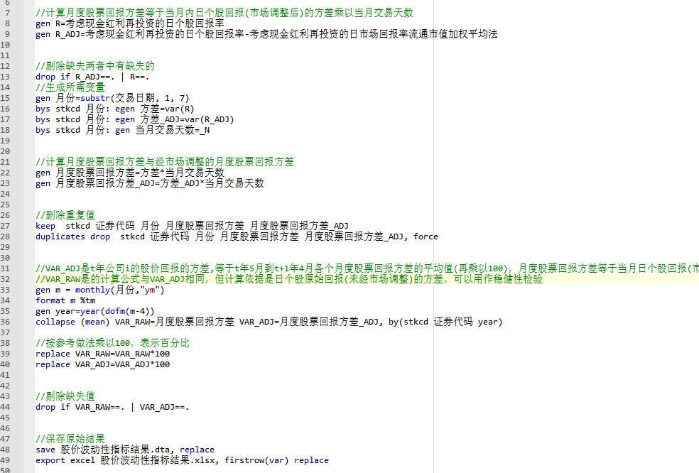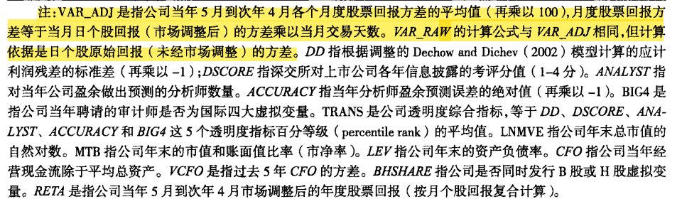 - VAR-RAW是的计算公式与VAR-ADJ相同,但计算依据是日个股原始回报(未经市场调整)的方差,可以用作稳健性检验