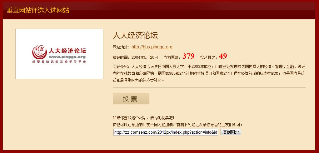 有奖投票:2012中国社区龙虎榜,现在排名12