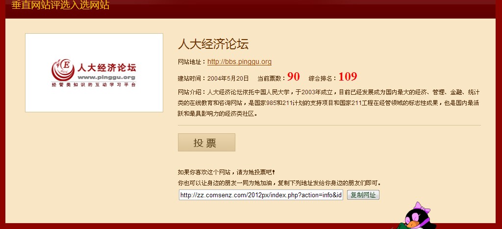 有奖投票:2012中国社区龙虎榜,现在排名12