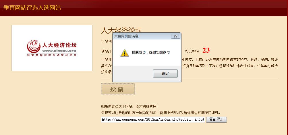 投票了,第4931票,排23位,论坛加油!