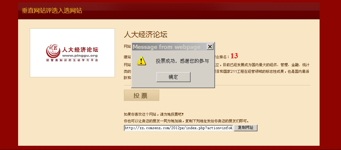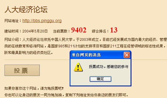 支持人大经济论坛。投票,再找人来投