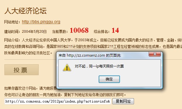 不错,已经一万多票了,大家加油哈,虽然也不是特别重要,但也花不了大家太多时间嘛,呵呵