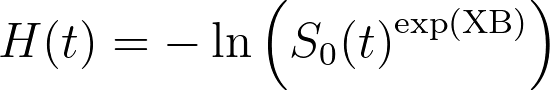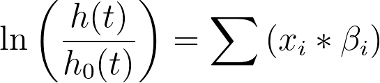 另一种表示此模型的方法是将两边除以基线风险(h0(t))并取自然对数,得到: