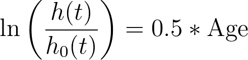 举个简单的例子,考虑预测变量“年龄(以年为单位)”的风险比为2。当年龄增加一岁时,风险率将乘以21(即2)。当年龄增加两岁时,风险率将乘以22(即4)。风险比提供了预测变量对风险率的“乘法效应”。